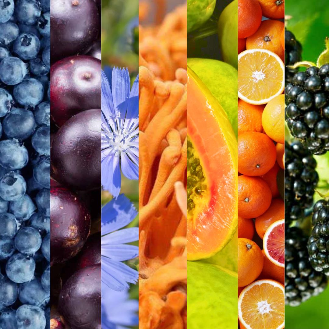 Denne unikke blanding kombinerer camu-camu, acai og goji med vitamin C, som bidrager til immunsystemets normale funktion og hjælper med at mindske træthed. Samtidig understøtter cikorie fordøjelsen, bidrager til at stimulere produktionen af fordøjelsesvæsker, støtter den gastrointestinale bevægelse og understøtter leverens sundhed.